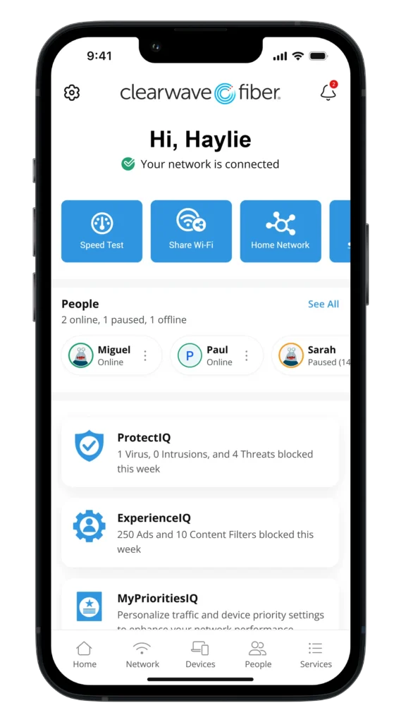 Your Clearwave Fiber Router delivers a fast, reliable home Wi-Fi experience AND it comes with the Clearwave Fiber Wi-Fi App so you can conveniently manage your home Wi-Fi network – it’s simple, easy to control and worry-free!