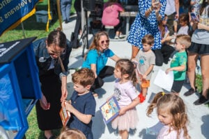 Children from Launch Learning Preschool participated in the event, placing the first books – signed by attendees – into the library. They each received a book and Clearwave Fiber bookmark to take home, plus a certificate of participation.